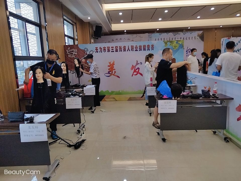 此次競賽設置了手工業類(6項)、服務類(3項)、信息通信技術類(1項)即3類10個競賽項目。經過甄選,無城6名殘疾人參賽,分別是美發師章定、錢曉媛和盲人按摩師秦海斌、趙偉、衛國,主播邾枝星。他們或是肢體殘疾、或是視力障礙,但這都未影響他們的參賽熱情,他們拿出自己的“絕活”,在屬于他們的舞臺上,綻放不一樣的風采。