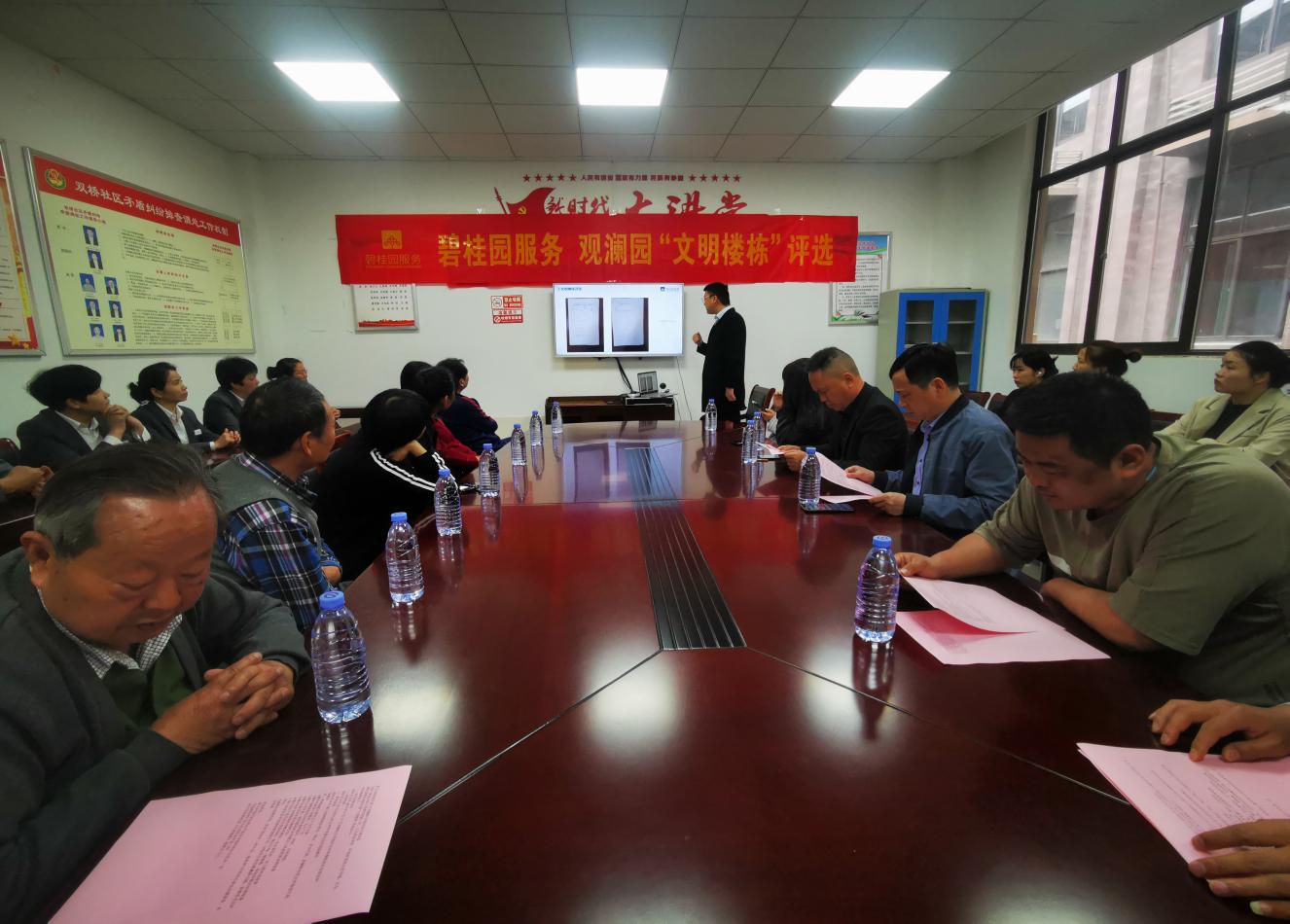 活動(dòng)現(xiàn)場(chǎng),住建局俞亞平主任、張榮飛主任,物業(yè)協(xié)會(huì)李勁松會(huì)長(zhǎng),雙橋社區(qū)網(wǎng)格員及觀瀾園業(yè)主代表均準(zhǔn)時(shí)到場(chǎng)。觀瀾園物業(yè)負(fù)責(zé)人王佳佳介紹評(píng)選標(biāo)準(zhǔn)包括:樓道無(wú)亂堆亂放的雜物、無(wú)亂扔果皮、煙頭、紙屑等現(xiàn)象;樓內(nèi)住戶(hù)未發(fā)生鄰里糾紛,鄰里和諧;樓內(nèi)住戶(hù)遵紀(jì)守法,未發(fā)生治安案件等。物業(yè)客服條線(xiàn)負(fù)責(zé)人孫福佳講解“觀瀾園評(píng)選文明樓棟”P(pán)PT,著重將觀瀾園現(xiàn)場(chǎng)各方面呈現(xiàn)在大家眼前。