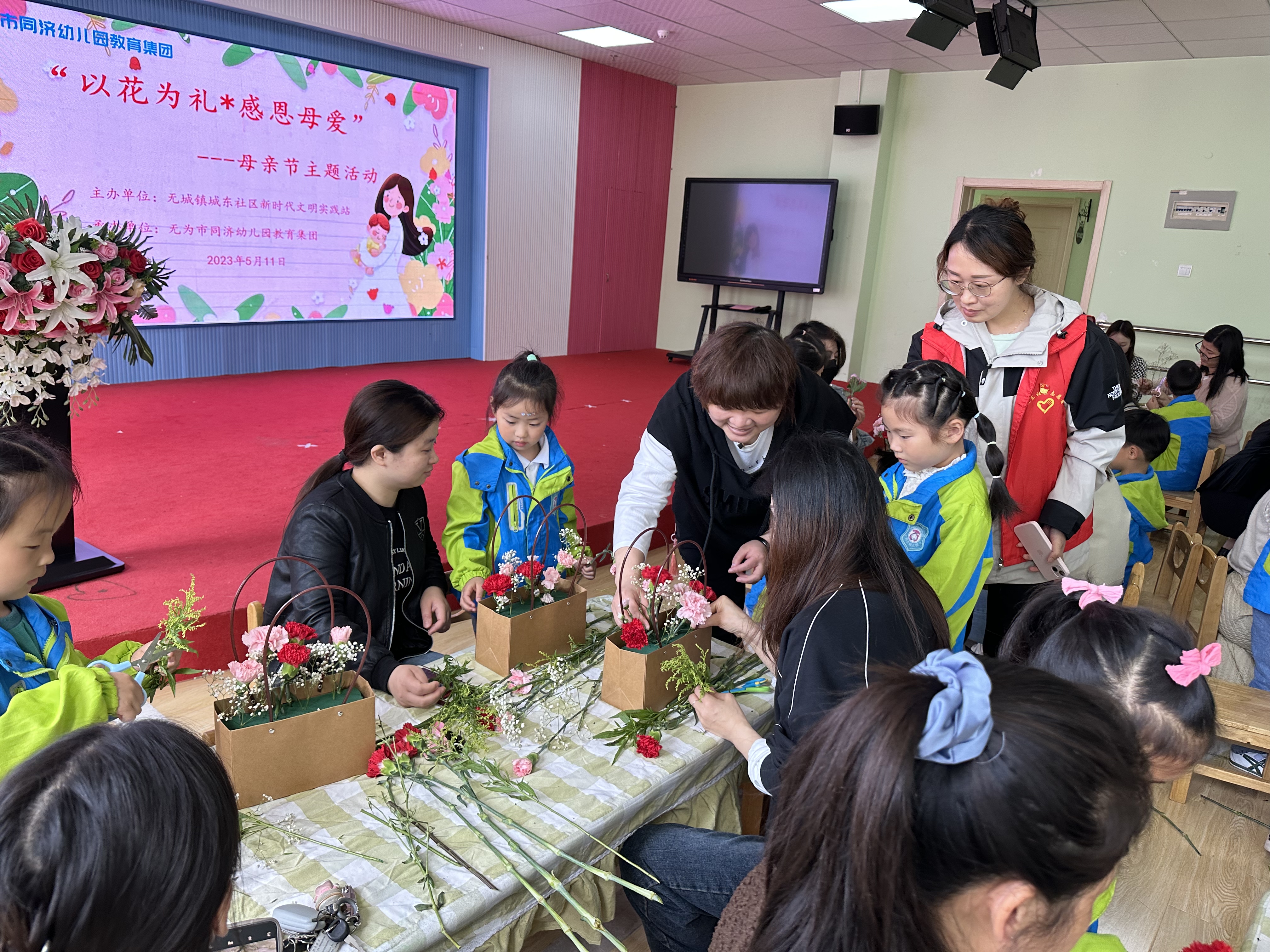 迎著五月的煦風,伴著初夏的明媚,為了讓孩子們從小感受到母親的偉大和無私,體驗到母親的辛勞,學會感謝母親、感激生命、感恩生活。在母親節來臨前夕,5月11日上午,無城鎮城東社區新時代文明實踐站聯合無為市同濟幼兒園教育集團開展了一場別開生面的“以花為禮,感恩母愛”母親節主題插花活動。