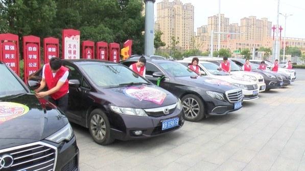 每年的愛心送考志愿車隊也是該市高考期間一道亮麗的風景線。今年志愿車隊由20輛私家車和30輛出租車組成,車頭統一貼有送考的愛心標識,后視鏡懸掛有綠絲帶。在高考兩天里,愛心車隊將按照約定時間、地點,在考前接送參考的考生,并在考試結束前半小時到各考點集中待命,為考生提供接送服務。