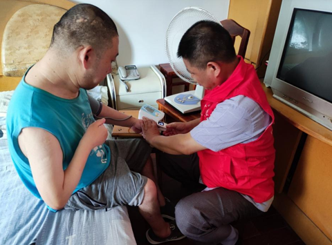 在居民家中,社區(qū)工作人員協(xié)助衛(wèi)生服務(wù)站醫(yī)護人員,為居民進行了量血壓、量血糖等常規(guī)的身體檢查,而后醫(yī)護人員仔細詢問了居民的日常生活方式,并給出了專業(yè)的指導(dǎo)意見,倡導(dǎo)居民多食用瓜果蔬菜,清淡飲食,保持良好的生活習(xí)慣。對待社區(qū)內(nèi)的部分特殊群體居民,除了常規(guī)的檢查和日常詢問之外,醫(yī)護人員還對患者及其家屬進行了精神衛(wèi)生及心理衛(wèi)生方面的指導(dǎo),叮囑家屬一定要時刻關(guān)注患者精神狀況。