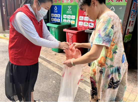 在居民投放垃圾時(shí),志愿者現(xiàn)場根據(jù)垃圾分類亭上的提示,引導(dǎo)其應(yīng)該如何將垃圾進(jìn)行精準(zhǔn)分類和投放,讓居民能夠更加直觀地了解到在日常生活中應(yīng)該怎樣去進(jìn)行垃圾分類,從而掌握正確的分類方法,積極主動(dòng)地參與到垃圾分類行動(dòng)中來。