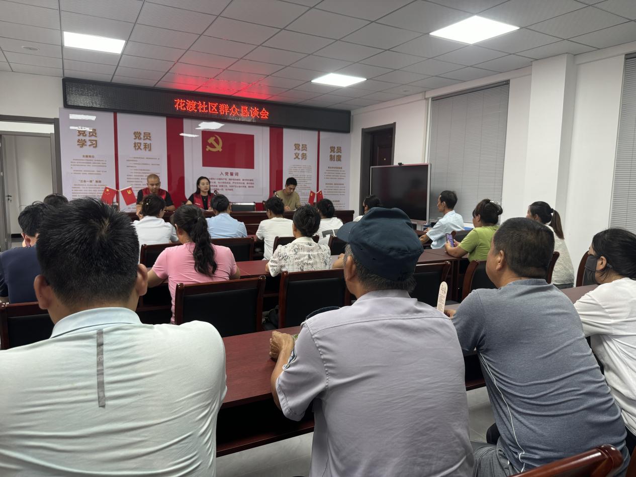 為匯聚民智、傾聽民聲,搭建一個居民與社區之間的溝通平臺,讓居民充分參與社區事務,共同為社區的平安建設出謀劃策,提升社區居民的生活品質,9月5日,花渡社區召開“聽民聲、匯民智、聚民心,共建平安社區新家園”群眾懇談會。