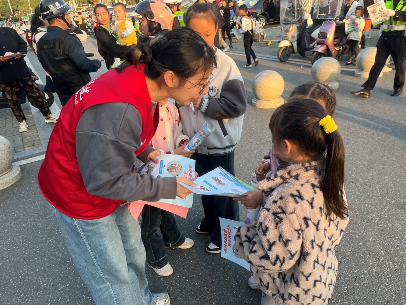 活動現(xiàn)場,抓住孩子們放學(xué)時機,通過發(fā)放宣傳彩頁和一封信的方式,向孩子們普及道路交通安全知識,特別強調(diào)小朋友“過馬路走斑馬線”“不橫穿馬路”“乘坐電動車要佩戴安全頭盔”等重要事項。此外,志愿者還告訴孩子們回家后要提醒家長不要亂停亂放車輛,騎電動車要正確佩戴頭盔,喝酒不要開車等交通安全常識。