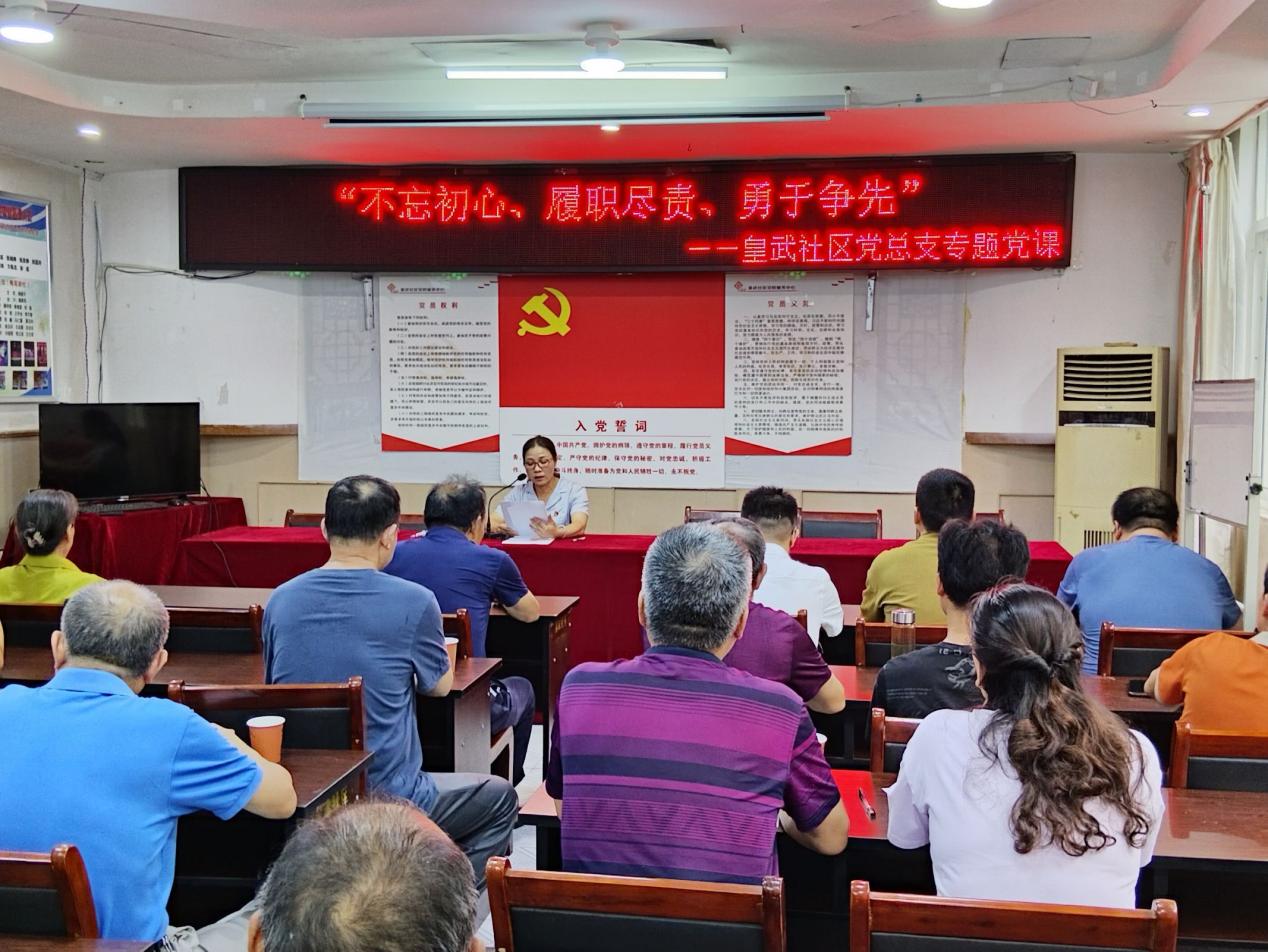 學(xué)深悟透,打造理論教育“生態(tài)圈”。皇武社區(qū)堅持定期開展集體學(xué)習(xí),抓好、抓實、抓細對黨員的常態(tài)化思想教育。通過組織集體學(xué)習(xí)、黨課交流、主題黨日等活動,嚴(yán)格落實“三會一課”學(xué)習(xí)制度,不斷拓展黨員、群眾政治思想的廣度、深度和高度,增強責(zé)任感和使命感。在強化理論學(xué)習(xí)的同時,皇武社區(qū)還用群眾喜聞樂見的方式開展理論宣講,發(fā)動黨員力量,讓黨的理論結(jié)合各項惠民政策深入基層、貼近群眾。目前,皇武社區(qū)各支部已多次開展“黨的理論進基層”主題活動,積極引導(dǎo)黨員主動亮身份、做表率,為社區(qū)治理貢獻力量。