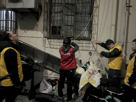 志愿者整治隊伍在夜間對小區內的樓道、車棚等區域進行了重點檢查,一旦發現飛線充電行為,立即進行勸阻和制止,并現場指導居民進行整改。
