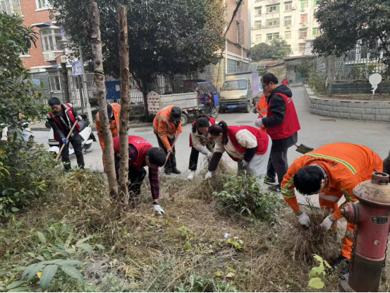 志愿者們抵達現場后迅速分組行動。一組深入樓道,面對堆積如山的桌子、沙發等雜物,他們不怕臟、不怕累,一件件搬運清理。這些雜物長期占據樓道空間,讓原本狹窄的通道更加擁擠,還堵塞了消防通道,一旦發生火災,后果不堪設想。另一組則對小區內違規種植的蔬菜區域展開清理,將私自開墾的菜地恢復成公共綠地。