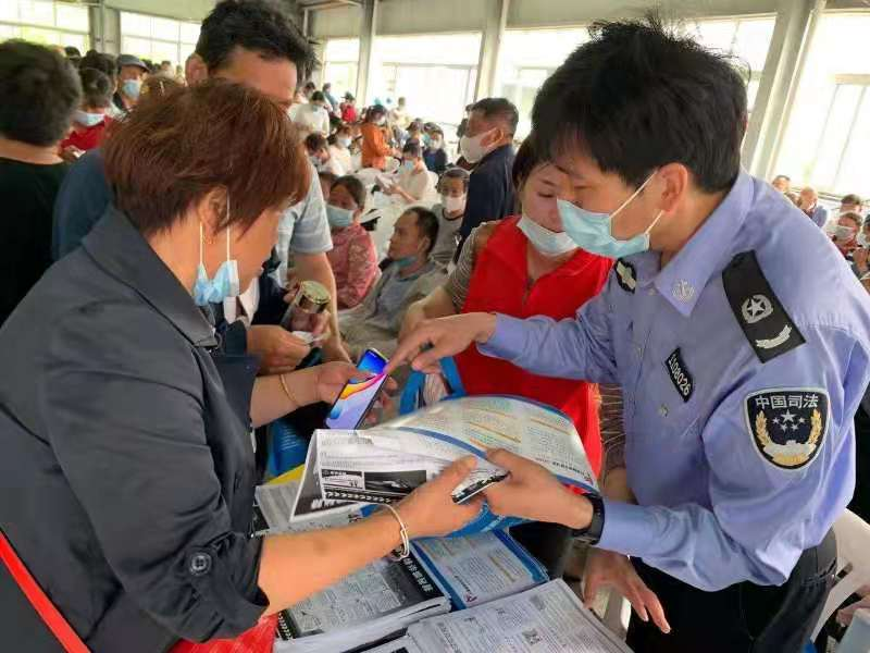 疫苗接種現(xiàn)場(chǎng),鎮(zhèn)綜治辦、司法所、派出所工作人員通過(guò)懸掛橫幅、張貼標(biāo)語(yǔ)、發(fā)放宣傳手冊(cè)等方式,積極引導(dǎo)群眾瀏覽宣傳展板及宣傳單內(nèi)容,現(xiàn)場(chǎng)提供法律咨詢服務(wù)、講解相關(guān)法律法規(guī)。各部門(mén)精心印制了各類宣傳單頁(yè)、手冊(cè),分別從群眾安全感和政法滿意度、如何抵制邪教、打擊傳銷(xiāo)、毒品的危害、預(yù)防詐騙、非法集資、掃黑除惡及婦女維權(quán)等方面開(kāi)展多方位宣傳。