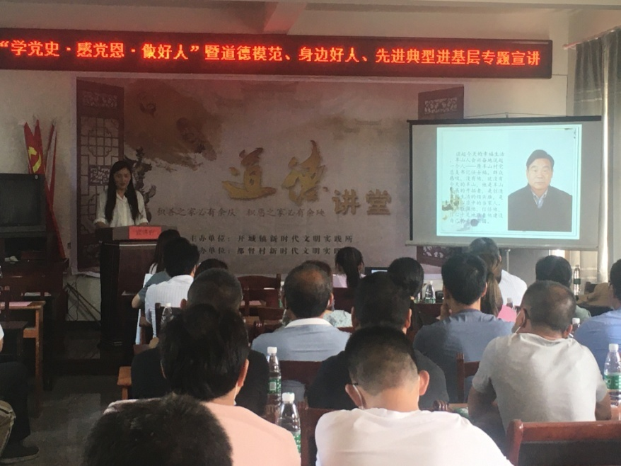 為將黨史學習教育走深走細走實,引領廣大黨員干部群眾學習黨的光輝歷史、感悟黨的初心使命、傳承黨的紅色基因,充分發揮模范好人在黨史學習教育中的先鋒示范作用,營造崇德尚善、向好人學習、向道德致敬的濃厚氛圍,5月31日下午,無為市開城鎮新時代文明實踐所在都督村舉辦“學黨史·感黨恩·做好人”暨道德模范、身邊好人先進典型進基層專題宣講活動。各村(社區)、學校主要負責人、文明創建業務人員,鎮文明辦、文化站全體工作人員及鎮關工委等部門參加活動。