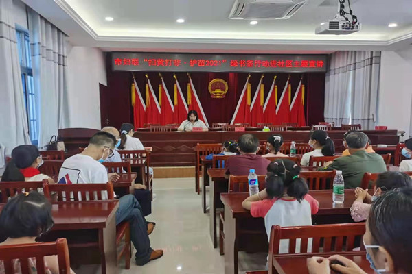 “掃黃打非 護苗2021”綠書簽進社區主題宣講。讀書最重要,可讀什么書更重要。為了進一步保護青少年兒童健康成長,引導學生多讀書、讀好書,遠離和抵制非法有害學生的出版物及信息。昆山鎮婦聯和市婦聯攜手將“掃黃打非 護苗2021”綠書簽活動也帶到了活動現場。號召大家堅持購買、使用正版,堅決抵制非法出版物,加入“綠書簽”行動。從我做起,從現在做起。(梅芹香)