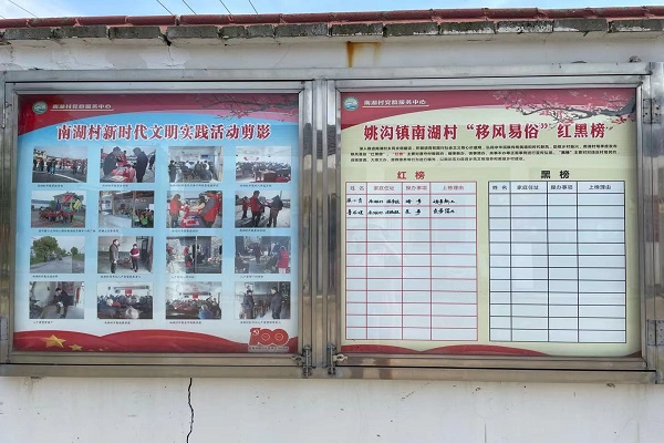 走進姚溝鎮南湖村,房屋錯落有致,老百姓三三兩兩圍在一起談論家長里短,三五孩童在一旁嬉戲打鬧,整個村莊充滿著濃濃的人情味。濃厚的人情味在拉近人們距離的同時又衍生出禮尚往來各種“人情消費”,這無疑給移風易俗工作增加難度,為啃下這塊“硬骨頭”,姚溝鎮南湖村以宣傳教育、新時代文明實踐、移風易俗“紅黑榜”為抓手,持續縱深發力推進移風易俗工作。