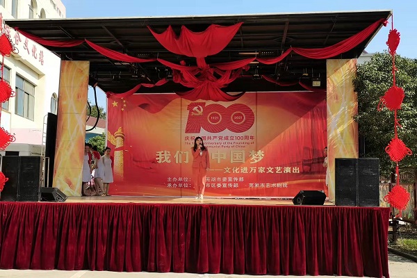 11月1日,暖陽和煦,天朗氣清,在無為市洪巷鎮文化站周邊人頭攢動,群眾目視前方,翹首以待。隨著車載大舞臺各項準備工作進入尾聲,一場群眾期待已久的“視聽”盛宴在主持人聲情并茂地開場白中拉開帷幕。據悉,此次文藝演出旨在慶祝中國共產黨成立100周年,進一步豐富基層群眾精神文化生活,切實提升群眾的幸福感。