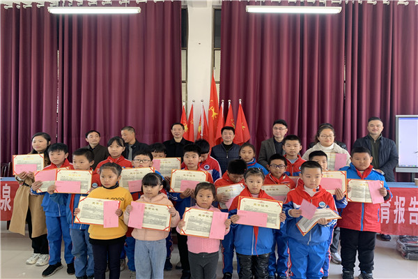 儀式上,仁泉小學校長梅榮兵、中心校校長王年明分別致辭,表達了歡迎和感激之情,匯報了學?,F狀、發展目標及愛國主義教育情況。接著陳赟書記為仁泉小學品學兼優的18名學生和業績突出的2名教師頒發了獎狀和獎金,劉振軍捐贈了愛心書包。劉振軍勉勵同學們要堅定文化自信,牢記歷史,發揚愛國主義精神和民族氣節。陳書記則結合自己學生時期的經歷引導同學們刻苦學習、發憤圖強,立志成才,知恩圖報,老師們愛崗敬業,忠于職守。