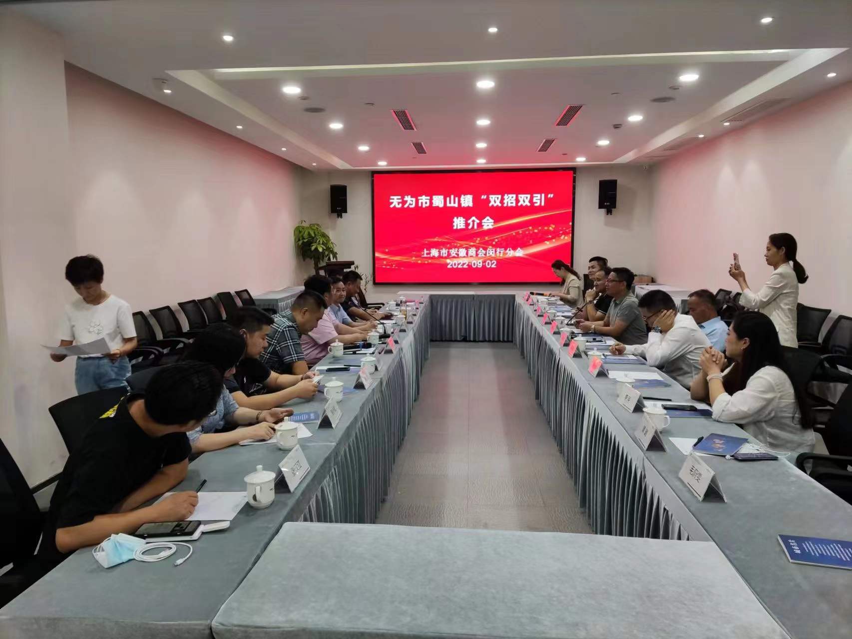 9月1-3日,蜀山鎮黨委副書記、鎮長王萬玉率招商組一行前往上海開展招商推介工作。此次“雙招雙引”推介會暨“鳳還巢”座談會于上海市安徽商會閔行分會代表處開展,上海帝羽集團、上海瑞卡集團、上海裕和實業有限公司等23家企業參會。