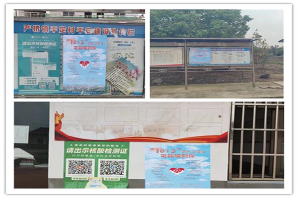 堅持“點上+面上”結合做宣傳。嚴橋鎮堅持“橫幅掛起來、海報貼起來、顯示屏亮起來、廣播響起來、宣傳車跑起來”,加大面上宣傳效果。目前,已經設置橫幅8條,海報108幅,電子屏播放290小時,使用應急廣播18個,每日播放8小時,鎮政府出動兩臺車輛在白天進行不間斷宣傳;同時,以全員核酸檢測為契機在各檢測點發放“一封信”14000封,進一步提高宣傳針對性。