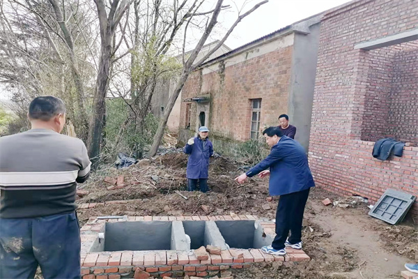 鎮(zhèn)村干部現(xiàn)場指導(dǎo)農(nóng)戶廁所改造圖片