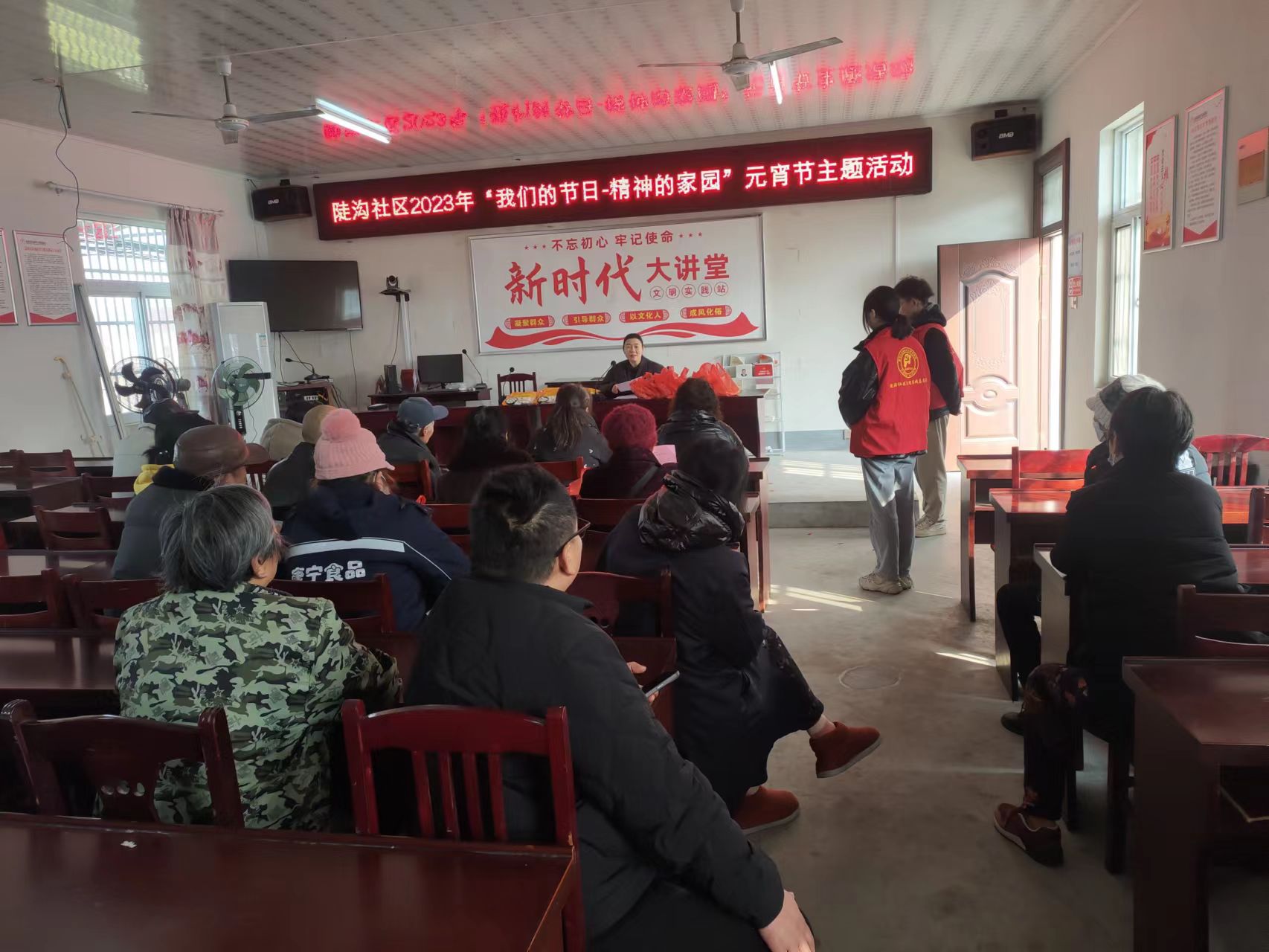 為弘揚傳統文化,以豐富節日文化生活活躍社區廣大群眾的節日氣氛。2月4日上午,陡溝社區在新時代文明實踐站舉辦2023年“我們的節日·精神的家園”元宵節主題活動。活動現場開展猜燈謎、移風易俗知識小問答、“暖民心”、垃圾分類有獎問答、“全民閱讀”、送湯圓送團圓、掃黃打非知識宣傳等志愿服務活動,把黨的利民惠民政策送到基層,讓群眾在輕松愉悅的氛圍里感受中華優秀傳統文化魅力,形式多樣的活動,吸引了眾多居民共度元宵佳節。