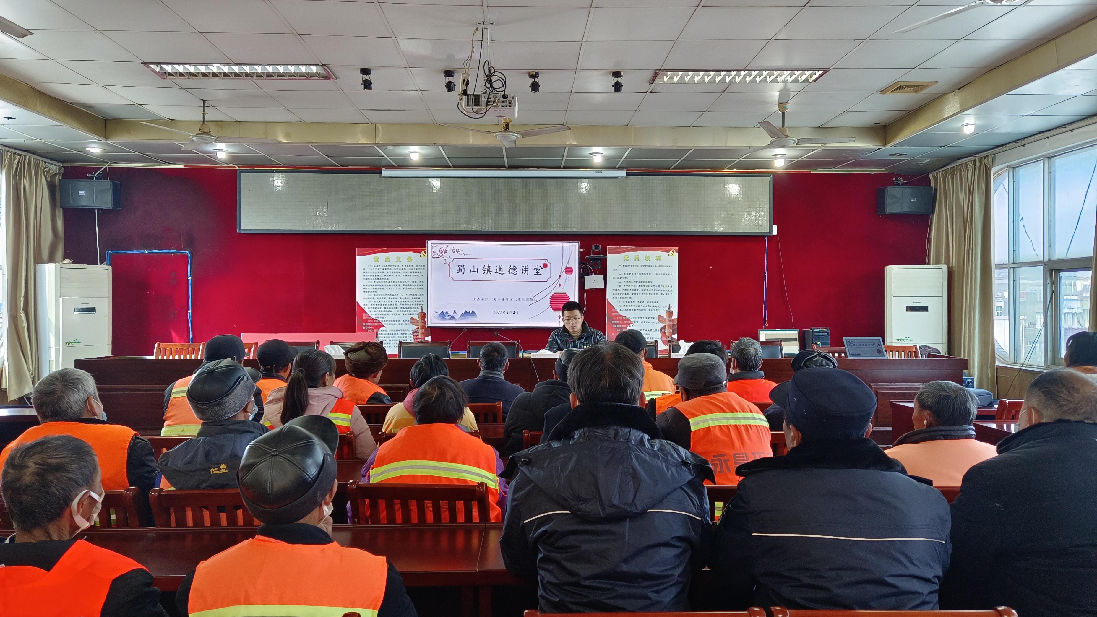陽春三月,春風送暖。為大力弘揚中華民族道德力量,樹立文明新風,3月2日上午,蜀山鎮新時代文明實踐所聯合鎮團委開展以“愛崗敬業、無私奉獻”為主題的道德講堂志愿服務活動。蜀山鎮機關干部、環衛工及志愿者等30余人參加此次道德講堂活動。
