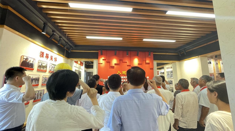 圖為黨員干部們?cè)谂R江文化館重溫入黨誓詞