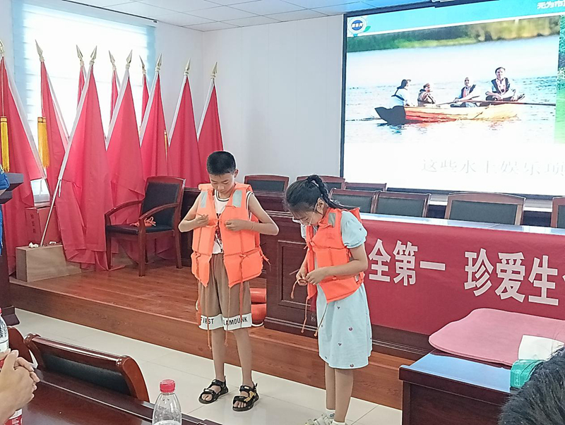 講座上,無為市藍天救援隊的授課老師以“安全第一 珍愛生命 預防溺水 從我做起”為主題,并結合真實鮮活的事例教育學生要注意自身安全,用一組組觸目驚心的數據,向與會人員傳達了生命的易逝和珍貴。授課老師從穿戴救生衣、如何在水中自救、如何使用救生圈、心肺復蘇、海姆立克急救法等多角度展開,并讓同學們上臺親自動手操作,讓孩子們在歡樂中學習。