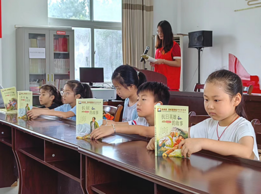 活動(dòng)現(xiàn)場(chǎng),由志愿者領(lǐng)學(xué)《井岡山的故事》之《朱德的扁擔(dān)》等紅色故事,與孩子們共同閱讀他的革命事跡,向孩子們講述當(dāng)兵時(shí)代的崢嶸歲月。此外,孩子們還津津有味地閱讀了《抗日英雄的故事》《長(zhǎng)征的故事》《鐵道游擊隊(duì)的故事》等紅色讀物。
