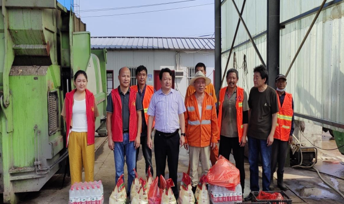 活動現場,志愿者和工作人員將礦泉水、毛巾、草帽、西瓜等防暑降溫物品送到環衛工人手上,同時鎮黨委副書記、工會主席以及鎮宣統委員也表達了對環衛工人的關心與關懷,叮囑大家高溫天氣,一定要做好自身防護、注意防暑、勞逸結合。