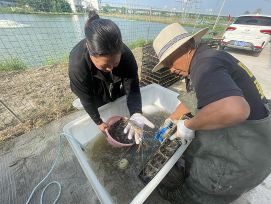 “你看我們的羅氏沼蝦個頭大、白凈通透,我們捕撈后按照蝦的個頭大小、品相進行分揀、稱重、裝車,以便供應市場不同需求。”基地分揀員說道。基地負責人楊少波介紹,他們是今年6月初下的蝦苗,每畝投放30000尾,這個塘口大概70畝,產量在7000斤左右,現在合肥很多海鮮城已經預定了,經濟效益還是十分可觀的。”
