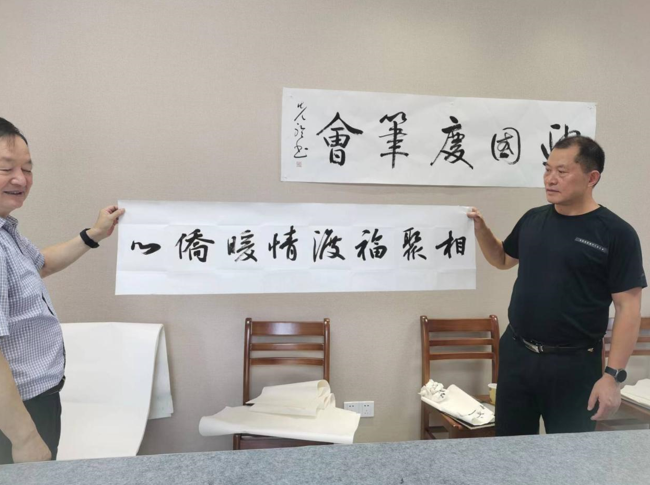 活動(dòng)現(xiàn)場(chǎng),志愿者為在場(chǎng)僑胞科普了中秋習(xí)俗的由來(lái),為大家送上了節(jié)日的問(wèn)候與祝福,大家暢所欲言,一聲問(wèn)候,兩句細(xì)語(yǔ),現(xiàn)場(chǎng)洋溢著濃濃的情意。同時(shí),福渡鎮(zhèn)邀請(qǐng)多位書(shū)法家開(kāi)展中華經(jīng)典誦讀、中秋詩(shī)文朗誦,并通過(guò)書(shū)法交流的方式表達(dá)對(duì)中秋、對(duì)中華傳統(tǒng)節(jié)日的理解和感悟,為各位僑胞送上節(jié)日贈(zèng)語(yǔ)。