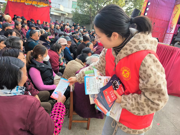 演出現場,工作人員向廣大村民群眾發放掃黑除惡宣傳資料,特別向群眾介紹12337舉報平臺的使用方法和《反有組織犯罪法》相關內容,鼓勵引導廣大群眾樹立法律意識,嚴格遵守法律法規,積極踴躍舉報黑惡勢力違法犯罪線索,有效提升了社會各界對掃黑除惡工作的支持。