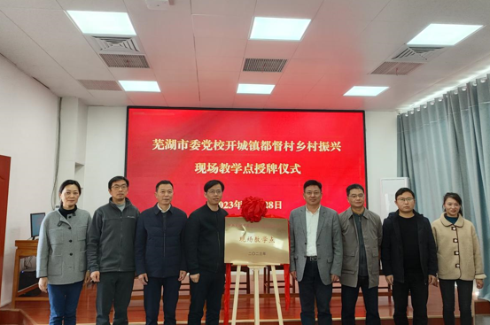 11月28日,蕪湖市委黨校開城鎮都督村鄉村振興現場教學點授牌儀式在都督村創富中心舉行,蕪湖市委黨校副校長胡沐,無為市委副書記、黨校校長吳石生等到場參加并進行揭牌,雙方簽訂《現場教學點建設協議書》,共同開發現場教學點,以進一步滿足新時代干部培訓需求,為我市建設省域副中心城市服務。
