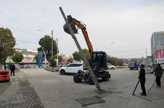 在福渡街道的施工現場,管道鋪設工作已全部完工,工人們正在將剩下廢棄的弱電桿線進行拆除,工人們將弱電桿拔出后,立即進行回填工作,因施工地點地處福渡街道,商鋪人員流動較多,施工現場派專人負責周邊環境安全。