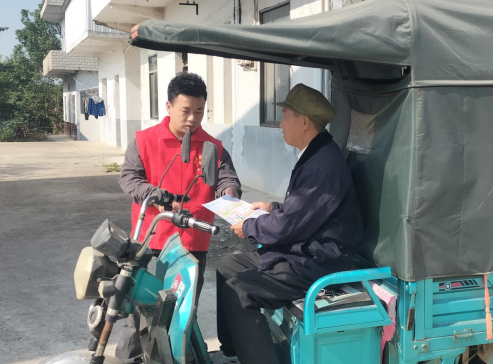 活動中,志愿者走村入戶向村道上來往的車輛行人發放文明交通宣傳資料,溫馨提示群眾規范佩戴頭盔,不闖紅燈,不逆行,倡議大家出門盡量采用綠色、低碳的交通出行方式,養成文明綠色出行習慣,共同營造文明交通綠色出行的社會風尚。