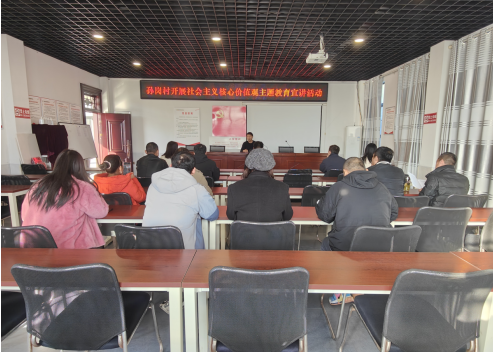 宣講會上,孫崗村黨總支書記胡耕耘開展以學習社會主義核心價值觀為主題的理論宣講,從24字社會主義核心價值觀入手,詳細講解了為何需要培育和踐行社會主義核心價值觀、如何培育和踐行社會主義核心價值觀,用深入淺出、通俗易懂的語言向廣大群眾闡釋了社會主義核心價值觀的豐富內涵、核心要義,將中華優秀傳統文化中的誠實守信理念與社會主義核心價值觀巧妙融合,強調社會主義核心價值觀的重要性。同時分享了多位身邊的好人好事,如王國定和周宗會勇闖火場遏制火勢蔓延的事跡,以及秦加銀和姜建軍奮不顧身英勇跳水救人的感人故事。這些生動的事例讓廣大群眾感受到了在平凡生活中不平凡的正能量精神,激發了他們向善向上的積極性,號召了大家在工作中、生活中要積極踐行社會主義核心價值觀,自覺擔負起時代賦予的崇高使命,做社會主義核心價值觀的引領者、踐行者和傳播者。
