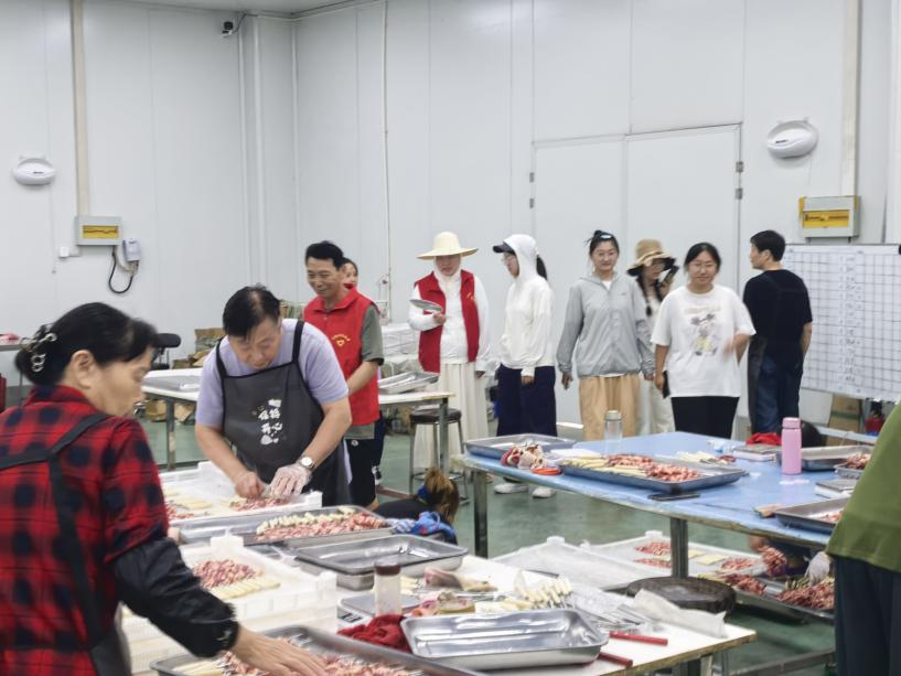 活動首站來到黃墩村新時代文明實踐站。志愿者向同學(xué)們詳細介紹了實踐站的功能區(qū)域、活動開展情況以及蘊含的文明理念。離開實踐站后,隊伍前往禾森食品有限公司。走進公司生產(chǎn)車間,干凈整潔的環(huán)境和有序的生產(chǎn)流程讓同學(xué)們眼前一亮。公司負責(zé)人熱情地向同學(xué)們介紹了食品生產(chǎn)的原料選擇、加工工藝以及質(zhì)量檢測等環(huán)節(jié),還現(xiàn)場展示了部分產(chǎn)品的制作過程。