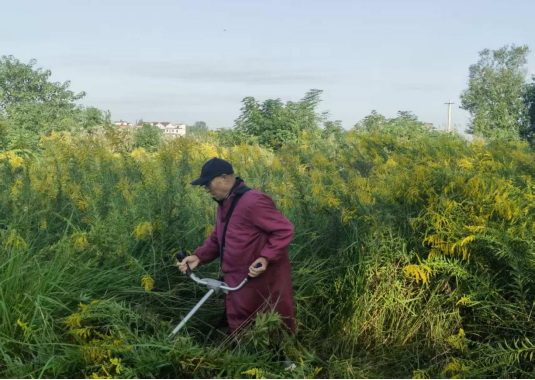 多元聯動清理,確保整治成效落地。針對不同區域、不同密度的“一枝黃花”生長情況,曹王村采取“人工+機械” 結合的多元清理模式,提升整治效率。在植株稀疏的農田邊角、溝渠沿線,組織村民志愿者人工拔除,確保連根清除,避免斷根再生;在生長密集的荒坡、林地,協調大型機械進