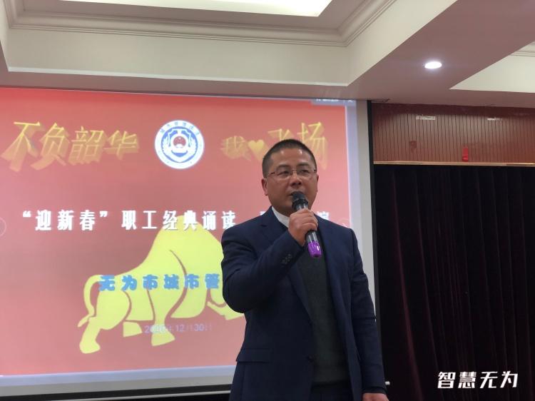 為加強精神文明建設,踐行新時代文明實踐,豐富職工的業余文化生活,30日下午,在2021年元旦來臨之際,無為市城管局組織開展“迎新春”誦讀經典、歌詠表演活動,參演職工深情演繹,喜迎新年,祝福偉大祖國。