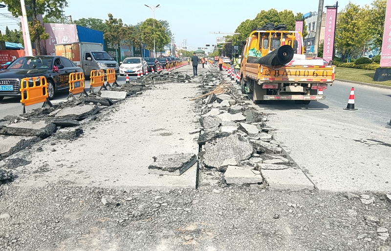 市城管局在進行多次實地調研的情況下,提前謀劃,及時組織工程技術人員進行勘查測算,制定維修方案,于4月15日至16日,利用晴好天氣,集中力量,將原10厘米破損瀝青路面銑刨后,組織養護工人對裂縫處加裝防裂貼、鋼絲格柵進行補強,之后攤鋪瀝青路面。