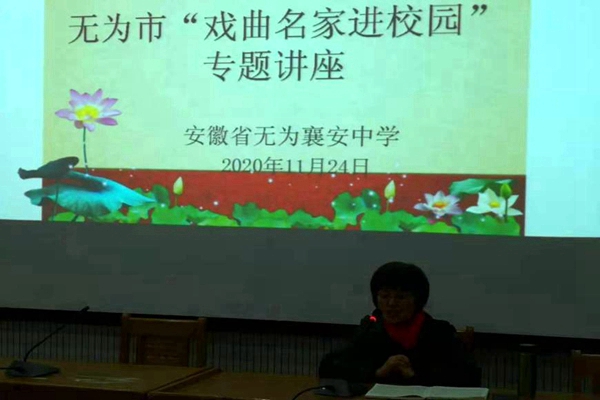 為豐富校園文化生活,激發(fā)學(xué)生對傳統(tǒng)戲曲文化的興趣,感受其獨(dú)特的魅力,近日,無為市襄安鎮(zhèn)襄安中學(xué)舉辦“無為市戲曲名家進(jìn)校園”專題講座活動(dòng)。中國戲劇家協(xié)會(huì)會(huì)員、無為市戲劇家協(xié)會(huì)主席陳曙光老師主講,活動(dòng)由校長助理杭仁廣主持。