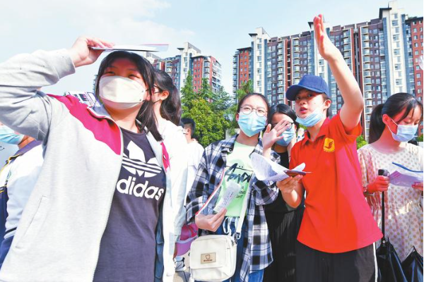 圖為昨日下午,考生在考場“踩點”,熟悉入場流程、考試環(huán)境。