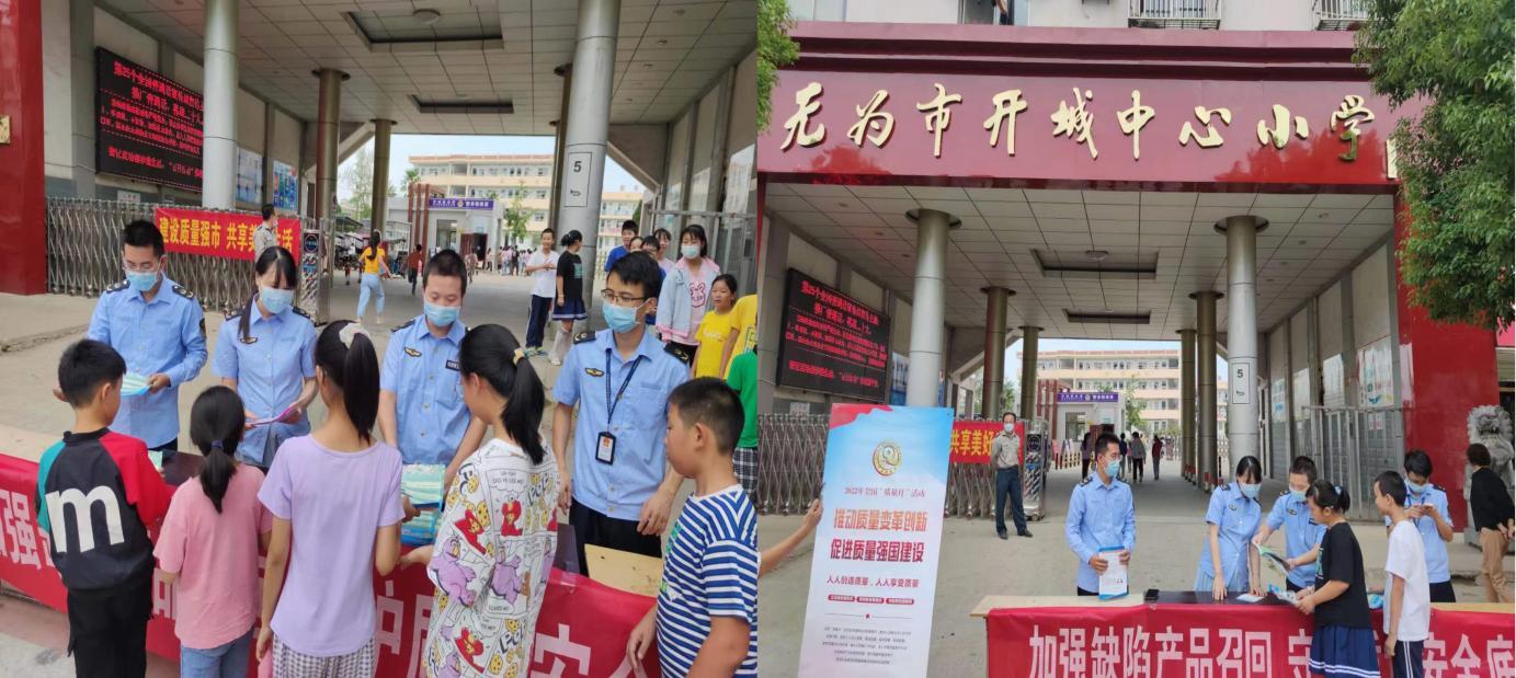 9月22日,無為市市場監管局走進無為市開城中心小學,以“推動質量變革創新促進質量強國建設”為主題開展“質量月”宣傳活動。