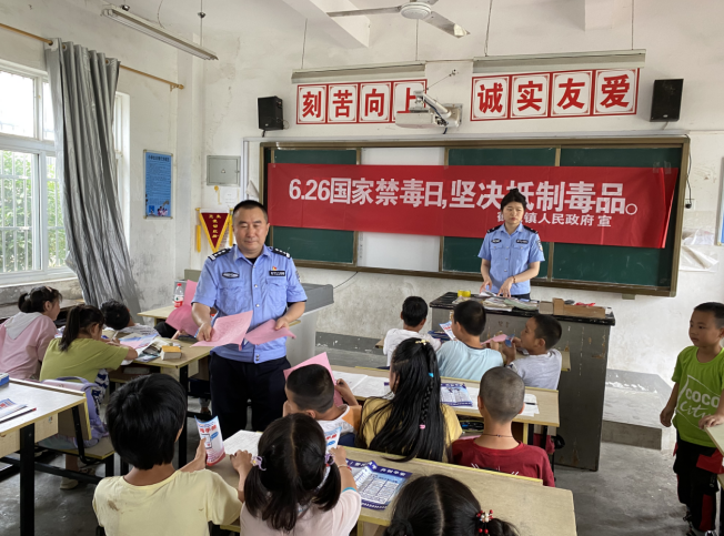為進一步加強校園禁毒預防教育工作,增強廣大師生抵制毒品的意識,提高自我保護能力,營造良好的校園環境,6月26日,鶴毛鎮派出所聯合綜治辦、新時代文明實踐所等部門在鶴毛鎮田畈小學開展禁毒宣傳進校園活動。