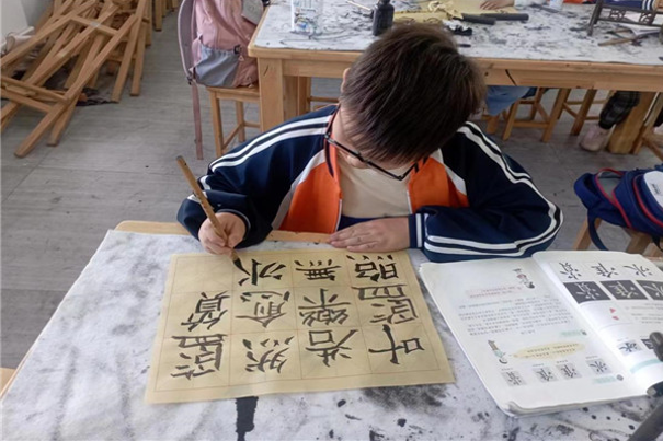 圖為泉塘鎮鄉村學校少年宮開展書法活動