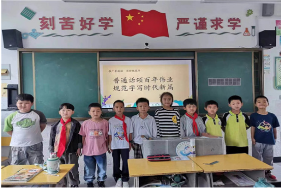 推普周到來(lái)前,泉塘中心小學(xué)便組織教師集中研討校內(nèi)語(yǔ)言文字工作實(shí)際情況,制定出切實(shí)可行的活動(dòng)方案。鎮(zhèn)新時(shí)代文明實(shí)踐所志愿者們?cè)谛@宣傳欄上張貼普通話倡議書,與各年級(jí)老師共同開展主題班會(huì)和黑板報(bào)活動(dòng),讓學(xué)生們領(lǐng)會(huì)到“講普通話標(biāo)標(biāo)準(zhǔn)準(zhǔn),寫規(guī)范字堂堂正正”的重要意義。此外,老師和志愿者們還以課后服務(wù)為契機(jī),開展“我是小萌娃,會(huì)讀古詩(shī)詞”和規(guī)范字比賽等系列活動(dòng),讓學(xué)生們?cè)谠?shī)詞歌賦中陶冶情操、啟迪智慧,在競(jìng)賽中增進(jìn)感情、提高涵養(yǎng),進(jìn)一步激發(fā)他們學(xué)習(xí)中華優(yōu)秀傳統(tǒng)文化的熱情,調(diào)動(dòng)他們講普通話、寫規(guī)范字、做文明人的積極性。