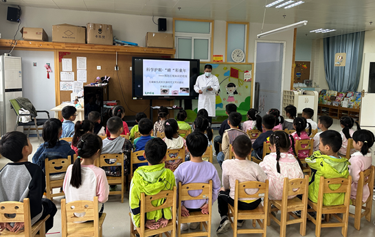 科普護(hù)眼知識(shí)。醫(yī)生老師通過(guò)故事、圖片、兒歌等多種形式,從專業(yè)的角度向幼兒介紹了眼睛的結(jié)構(gòu)、近視的定義、近視的分類及危害。讓幼兒主動(dòng)參與到保護(hù)視力的活動(dòng)中,學(xué)習(xí)正確的坐姿,養(yǎng)成愛(ài)眼護(hù)眼的習(xí)慣。