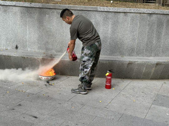 在知識宣傳結束后,為了讓小朋友們和老師更加直觀地感受滅火器的使用方法,體會滅火器的滅火功效,社區工作人員向老師和孩子們現場演示了滅火器的使用。最后,社區工作人員還就幼兒園小朋友安全用電以及防溺水工作進行了宣傳。
