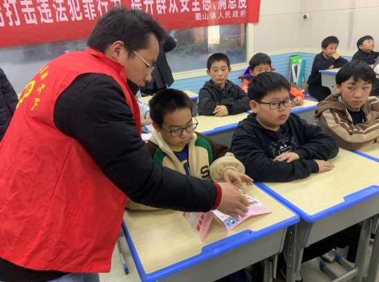 為織密未成年人保護網,構建平安和諧校園,提升群眾安全感滿意度,11月16日下午,蜀山鎮綜治辦聯合司法所到蜀山學校開展“雙提升”宣傳活動。