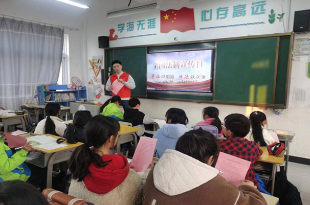 為加強學生的法律意識,提升明辨是非以及自我保護的能力。12月4日下午,泉塘鎮新時代文明實踐所志愿者結合全國法治宣傳日,利用課余時間在泉塘中心小學六(二)班,為同學們開展了一場別開生面的普法宣傳教育主題班會。