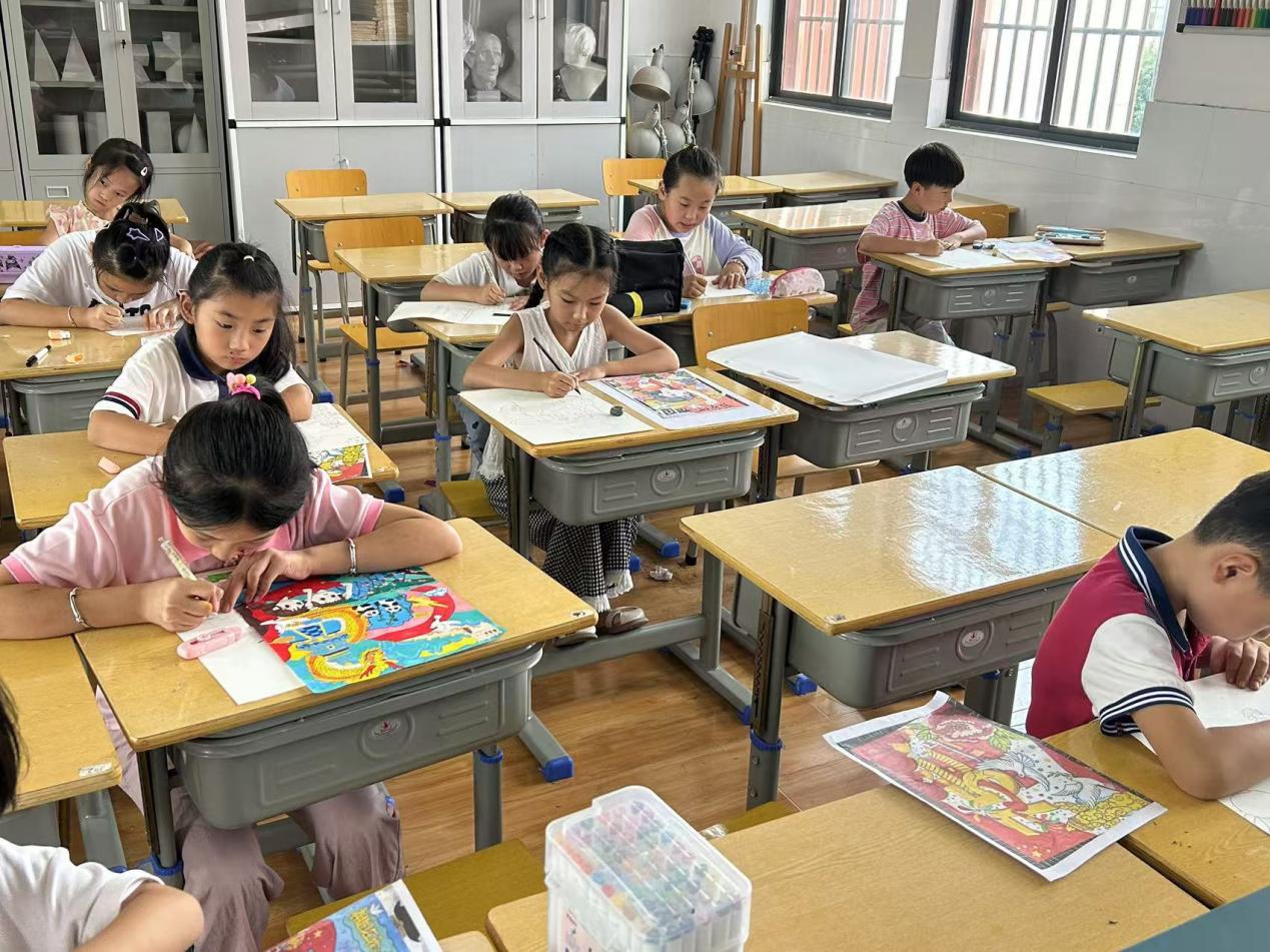 比賽現(xiàn)場(chǎng)氣氛熱烈,墨香四溢。學(xué)生們神情專注,一筆一畫(huà)用心創(chuàng)作書(shū)法和繪畫(huà)作品。書(shū)法作品有的剛勁有力,有的端莊秀麗,展現(xiàn)了同學(xué)們?cè)鷮?shí)的書(shū)法功底;繪畫(huà)作品則色彩斑斕、創(chuàng)意十足,有雄偉壯麗的天安門、鮮艷的五星紅旗、美麗的祖國(guó)山河等,充分表達(dá)了孩子們對(duì)祖國(guó)的贊美和熱愛(ài)之情。此次活動(dòng)邀請(qǐng)了專業(yè)的書(shū)法和繪畫(huà)老師擔(dān)任評(píng)委。經(jīng)過(guò)嚴(yán)格評(píng)選,最終產(chǎn)生一、二、三等獎(jiǎng)以及優(yōu)秀獎(jiǎng),并為獲獎(jiǎng)作品頒發(fā)了獎(jiǎng)狀和獎(jiǎng)品。