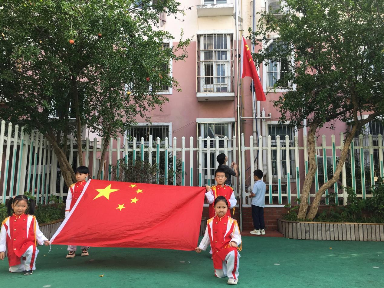 上午8時30分,隨著初升的太陽灑下溫暖的光芒,金河社區的志愿者和都市花園幼兒園的小朋友們在都市花園幼兒園的操場上拉開序幕,由幼兒園的小朋友們組成的升旗隊伍邁著整齊的步伐,護送著鮮艷的五星紅旗緩緩走向旗臺。全場人員肅立,目光緊隨國旗,心中充滿了對祖國的無限崇敬與熱愛。