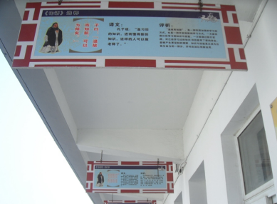 聚焦宣傳引領,經典璀璨校園。未成年人是祖國的未來,少年強則國強,少年智則國智。為營造未成年人健康成長良好的環境,近年來,高溝鎮不斷強化未成年人思想道德建設,結合校園實際將經典國學與未成年人思想道德建設有機結合起來,打造書香校園,立美德培新人傳經典。讓學子學習國學,感悟經典文化,聚焦文明之光,淬煉道德星火。“不積跬步無以至千里,不積小流無以成江海”“讀萬卷書,行萬里路”“溫故而知新,可以為師矣”“勿以惡小而為之,勿以善小而不為”“子不學,非所宜。幼不學,老何為”……字字珠璣,璀璨中華文化,穿越歷史長河。各校科學謀劃、精心組織,暢通宣傳渠道,弘揚國學經典,一校一創意,一園一精品。《論語》《三字經》《百家姓》等現當代名言警句、經典詩文,以圖文并茂的形式,靜靜展現于樓道、文化墻、宣傳欄、宣傳畫、電子顯示屏、綠化帶等區域,散發出濃濃的道德氣息,美化著校園環境,陶冶著學子的心靈,經典璀璨校園,傳播社會主義核心價值觀。